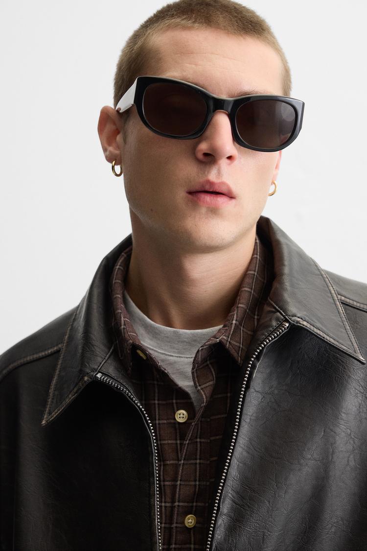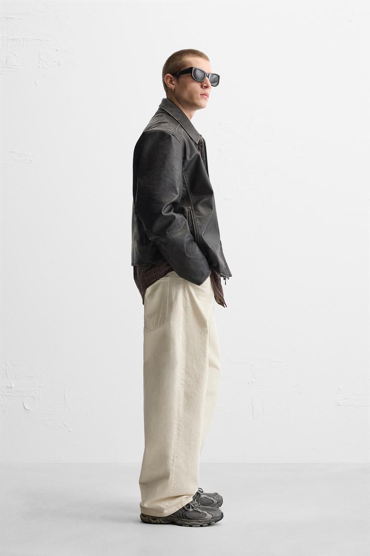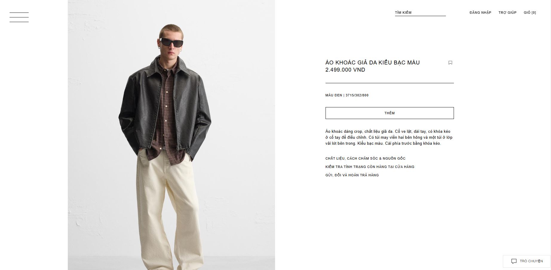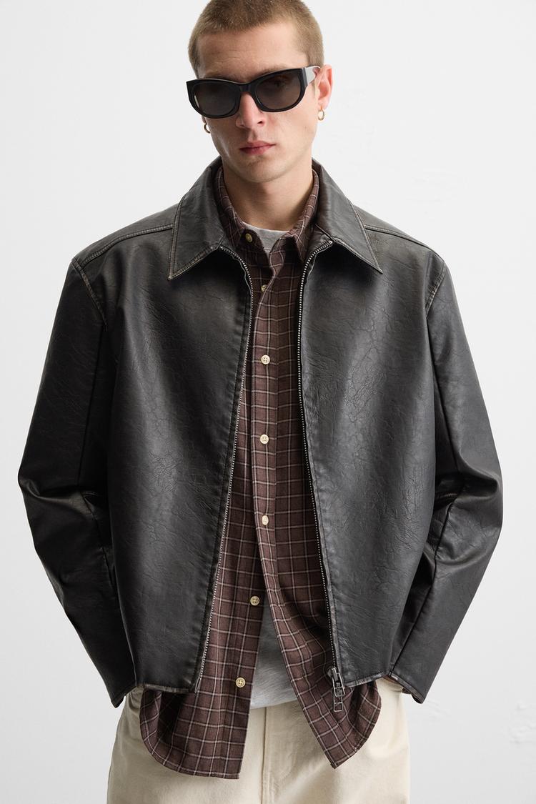 Áo khoác dáng crop, chất liệu giả da. Cổ ve lật, dài tay, có khóa kéo ở cổ tay để điều chỉnh. Có túi may viền hai bên hông và một túi ở lớp vải lót bên trong. Sử dụng khóa kéo phía trước.