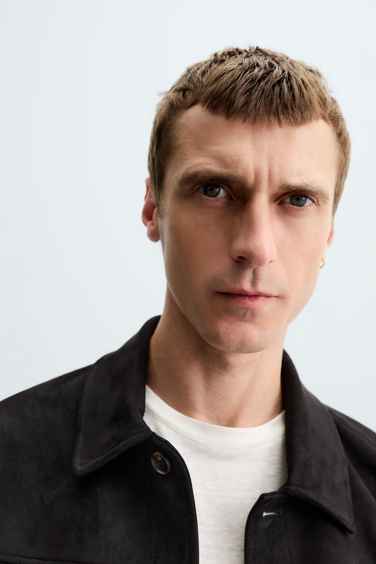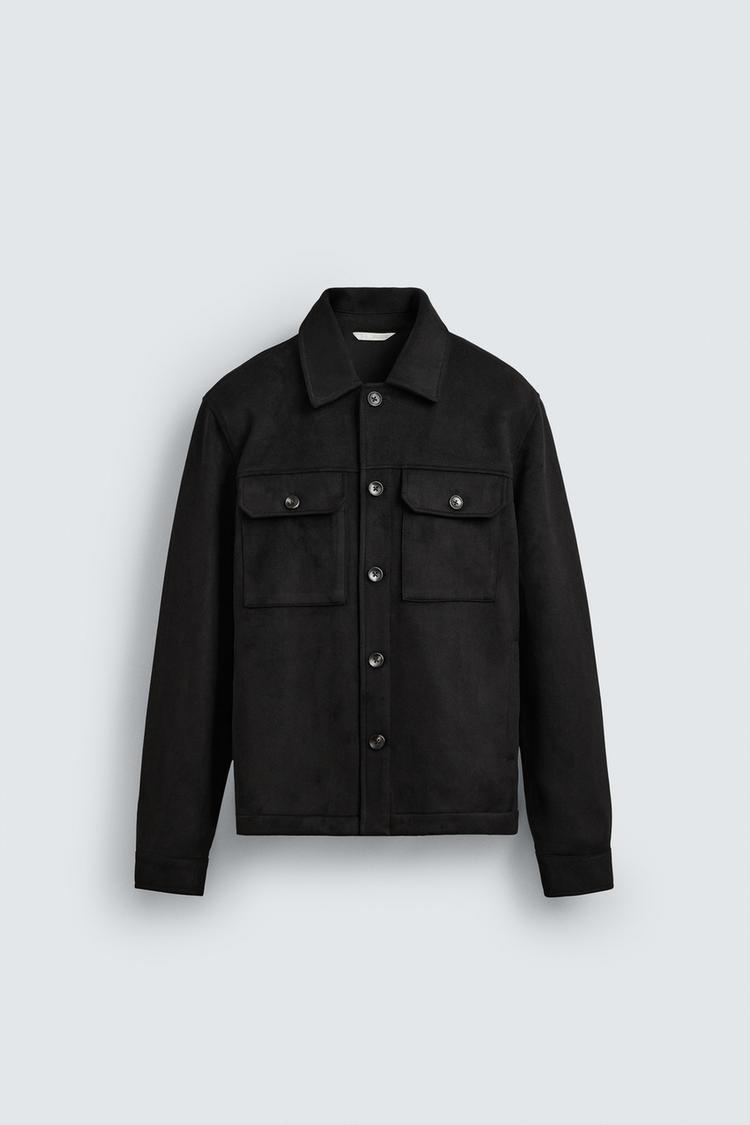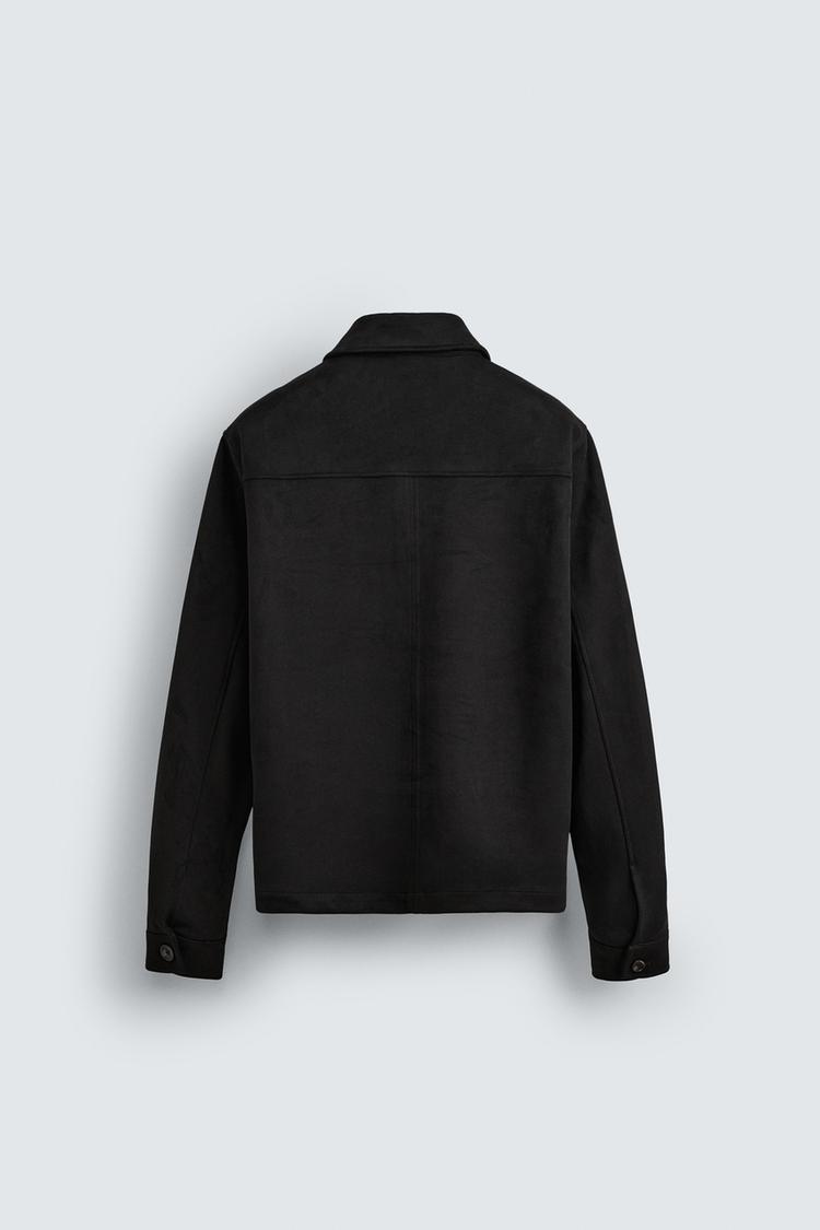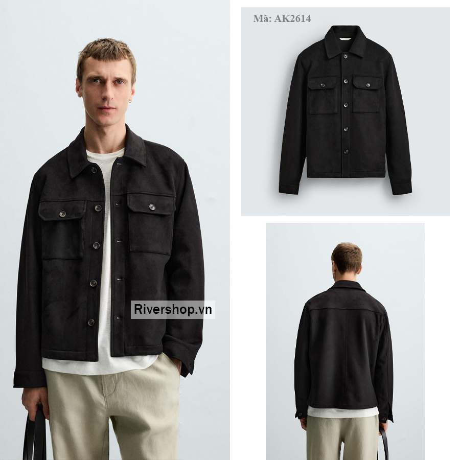 Áo sơ mi khoác ngoài vải giả da lộn, dáng regular fit. Cổ ve lật, dài tay, cổ tay bo và cài khuy. Có hai túi đáp có nắp trước ngực và túi may viền hai bên hông. Cài phía trước bằng hàng khuy cài.