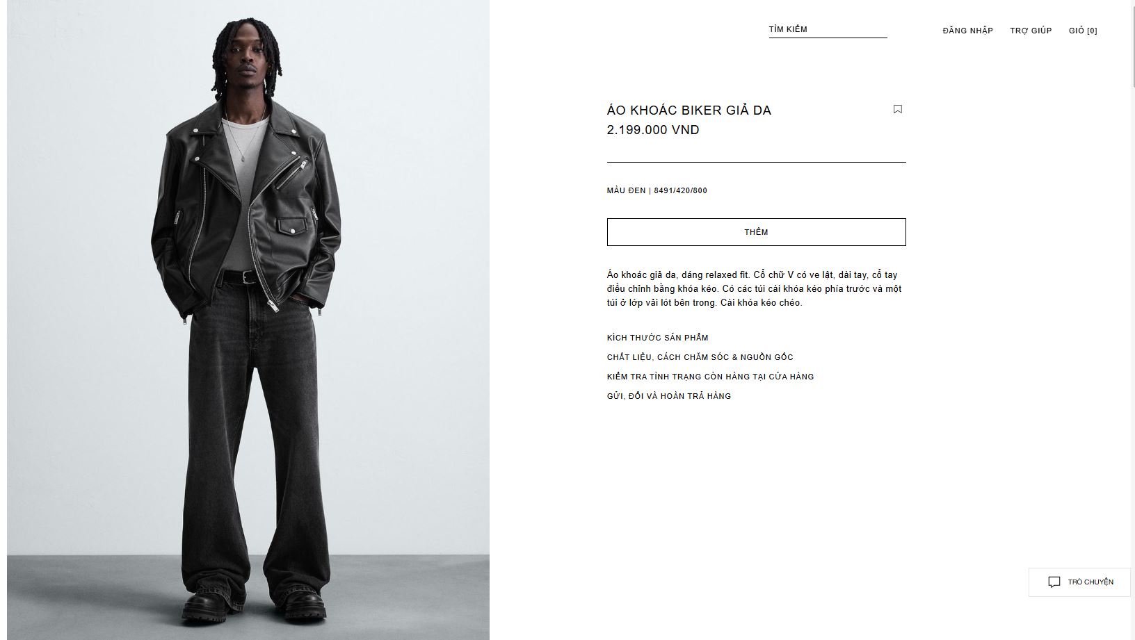 Áo khoác giả da, dáng relaxed fit. Cổ chữ V có ve lật, dài tay, cổ tay điều chỉnh bằng khóa kéo. Có các túi cài khóa kéo phía trước và một túi ở lớp vải lót bên trong. Cài khóa kéo chéo.