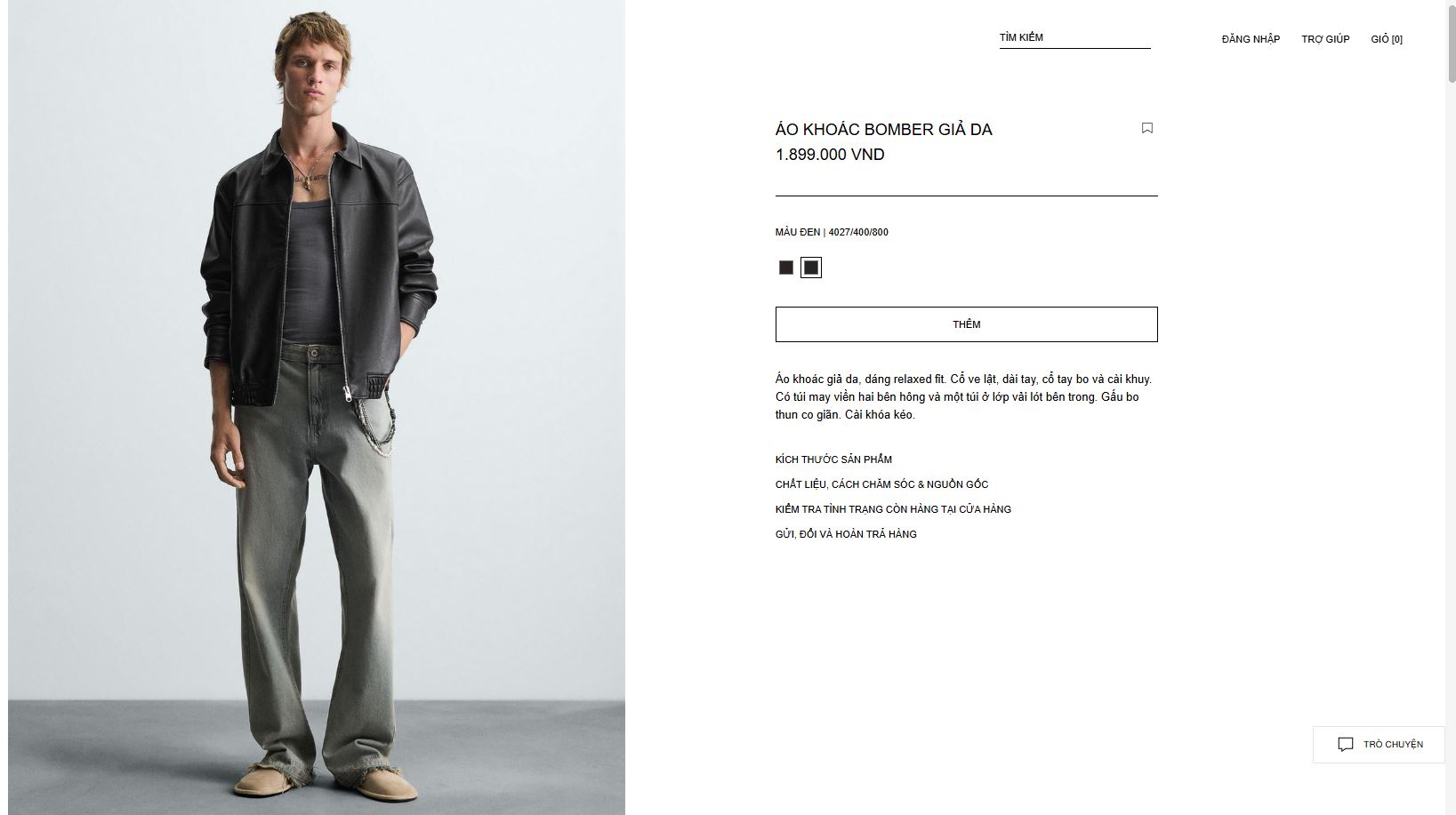 Áo khoác giả da, dáng relaxed fit. Cổ ve lật, dài tay, cổ tay bo và cài khuy. Có túi may viền hai bên hông và một túi ở lớp vải lót bên trong. Gấu bo thun co giãn. Cài khóa kéo.