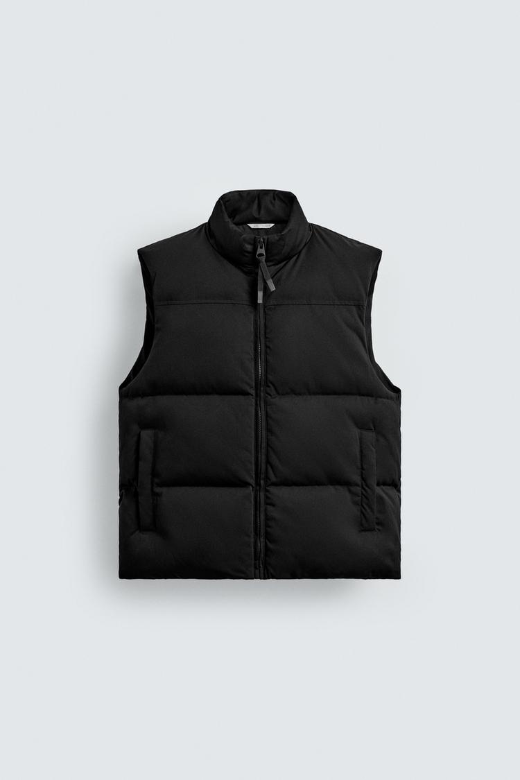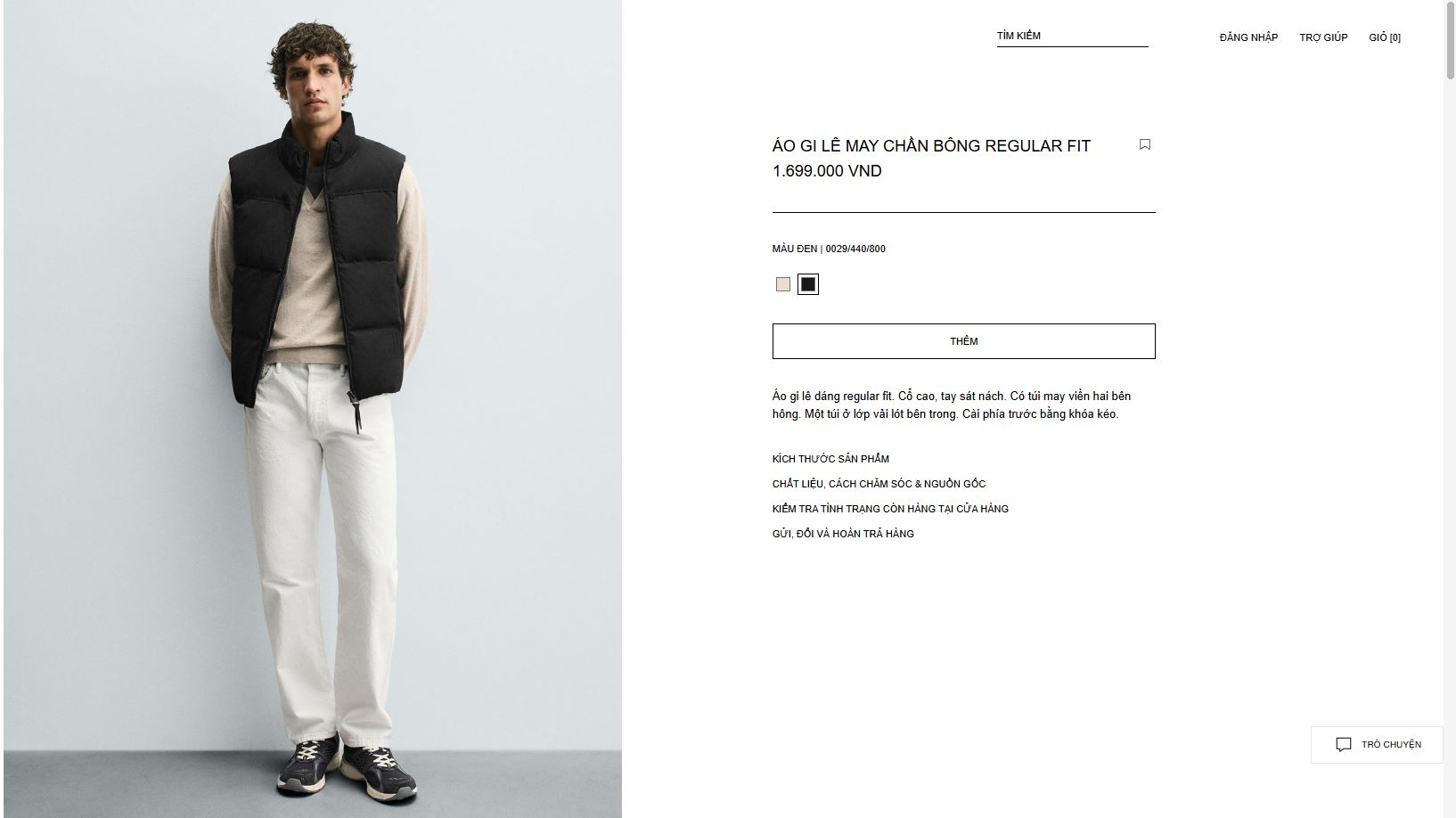Áo gi lê dáng regular fit. Cổ cao, tay sát nách. Có túi may viền hai bên hông. Một túi ở lớp vải lót bên trong. Cài phía trước bằng khóa kéo.