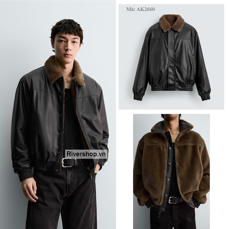 AK2660 - Z.RA ÁO KHOÁC GIẢ DA MẶC HAI MẶT