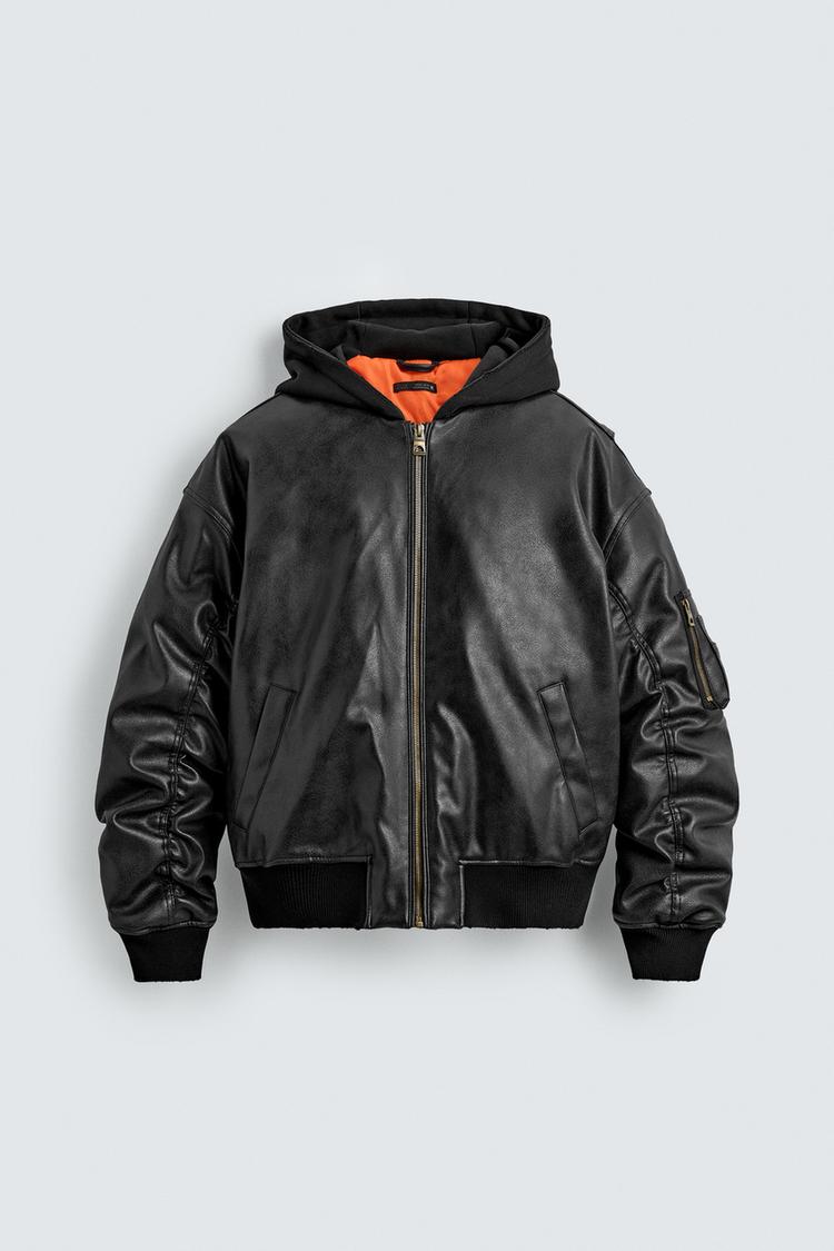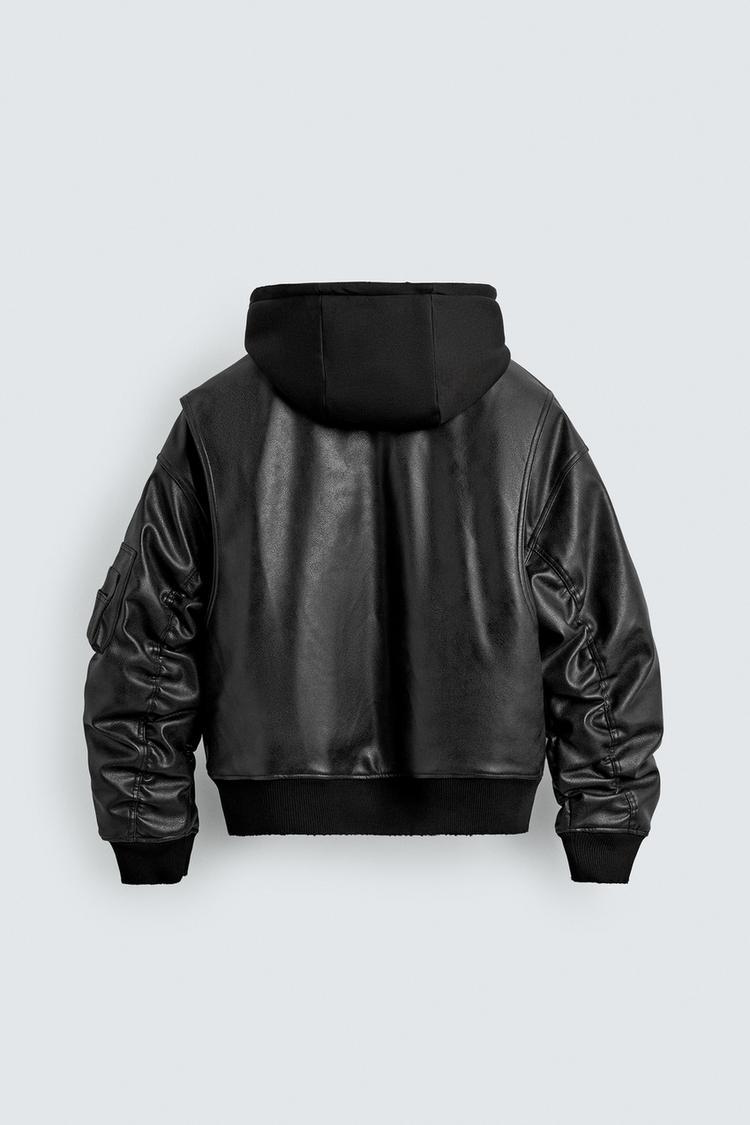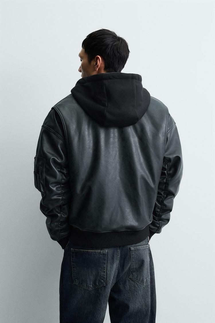 AK2665 - Z.RA COMBINATION HOODIE FAUX LEATHER JACKET