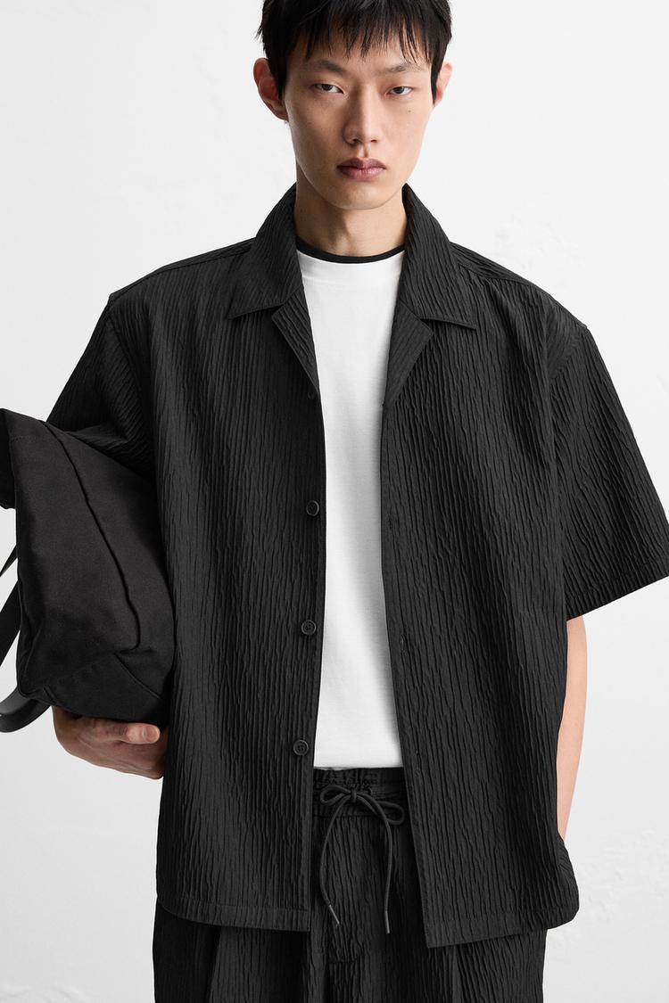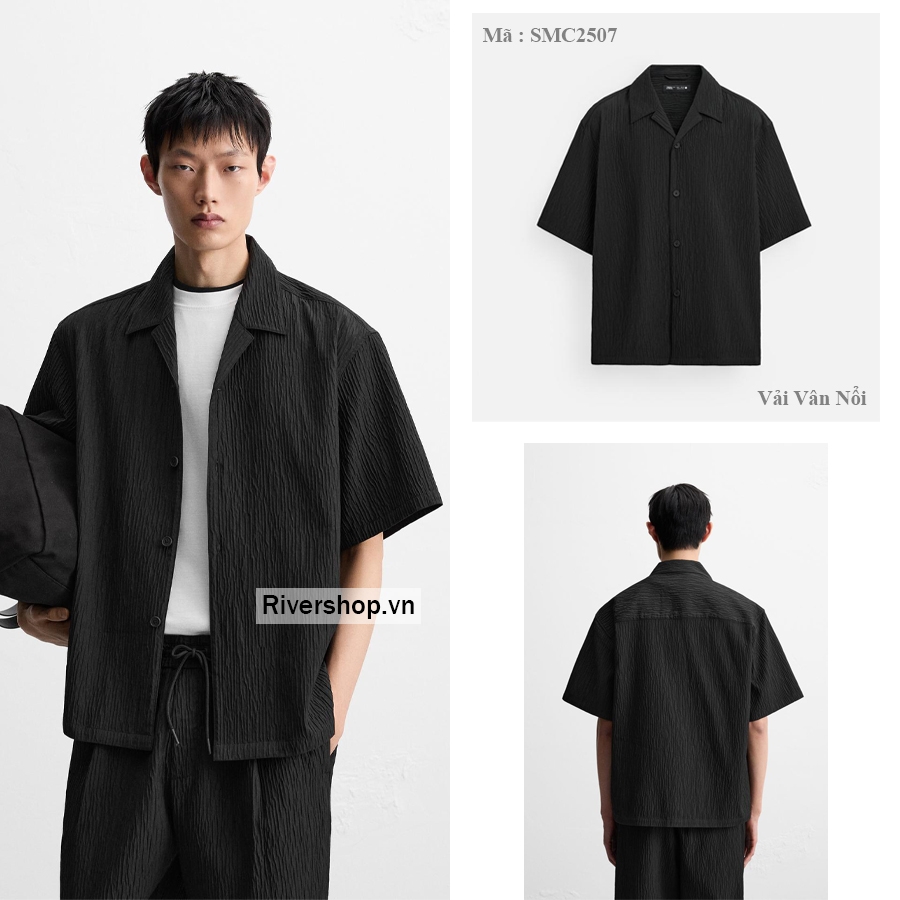 - Mô tả sản phẩm: Áo sơ mi dáng oversize, chất liệu vải có vân nổi trên bề mặt. cổ áo ve bẻ phong cách cuban shirt. Gấu xẻ hai bên.