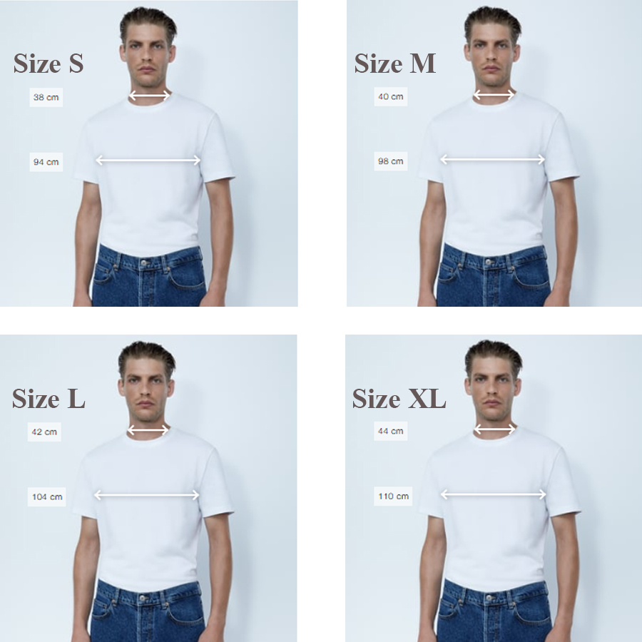 Size L: vòng cổ 42cm - vòng ngực 104cm Size XL: vòng cổ 44cm - vòng ngực 110cm